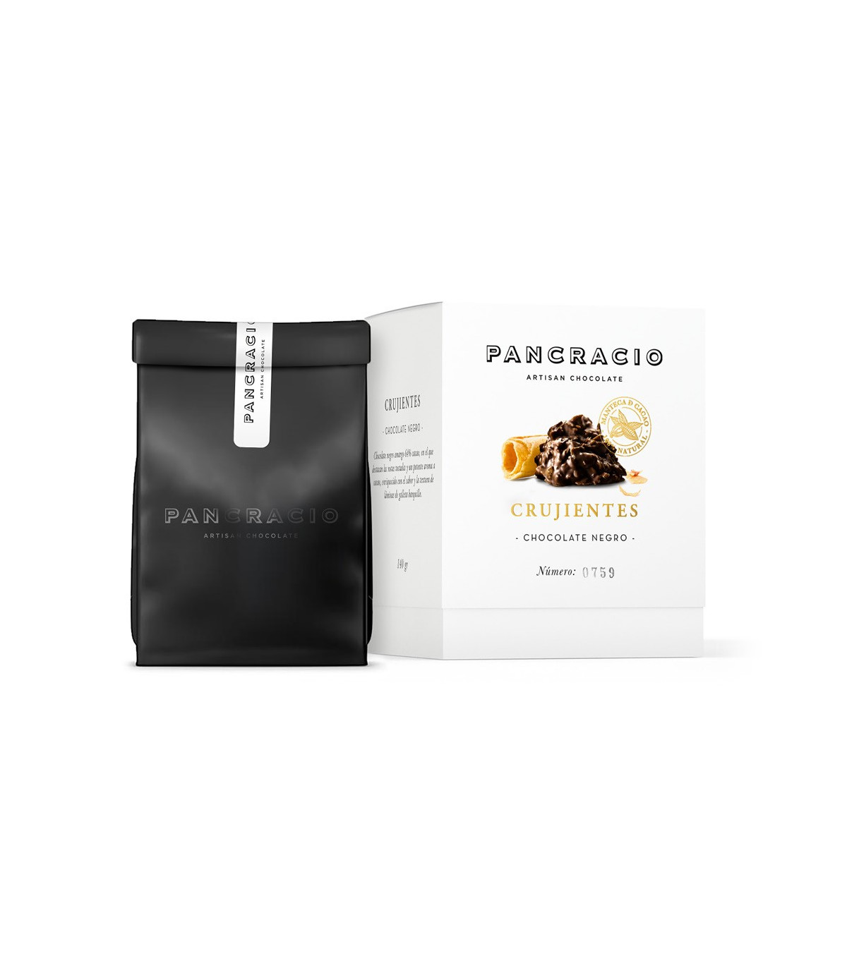 Dark chocolate 64% cocoa, which highlights the roasted notes and a powerful cocoa aroma, enriched with the flavor and texture of wafer waffle sheets.
