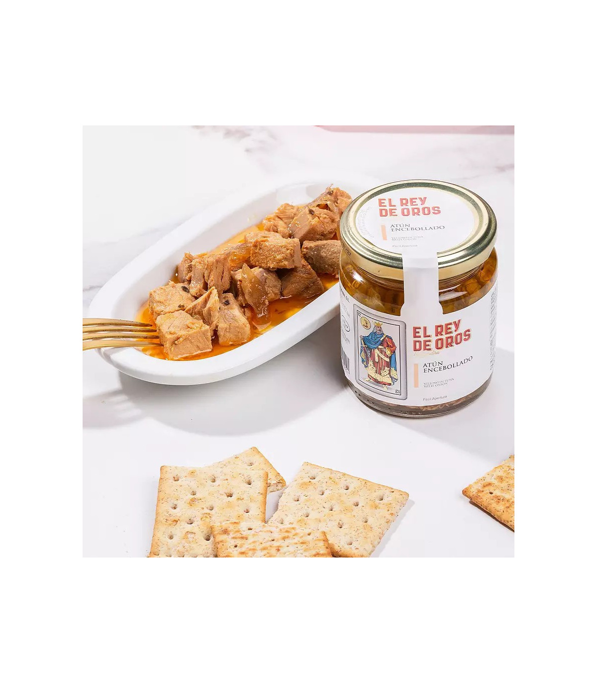 El atún de aleta amarilla, conocido por su textura suave y su sabor delicado, se combina perfectamente con la rica y aromática cebolla, creando un producto de calidad insuperable. Nuestro atún es seleccionado cuidadosamente, asegurando que solo los mejores cortes lleguen a tu mesa.
