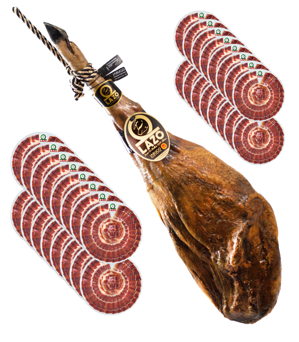 Disfruta en tu hogar de 33 sobres de Jamón de bellota 100% ibérico DOP Jabugo cortado a cuchillo por un experto jamonero listo para emplatar.
