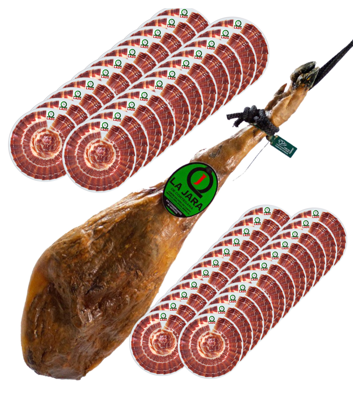 Disfruta en tu hogar de 37 sobres de jamón cebo de campo ibérico 100 cortado a cuchillo por un experto jamonero listo para emplatar.