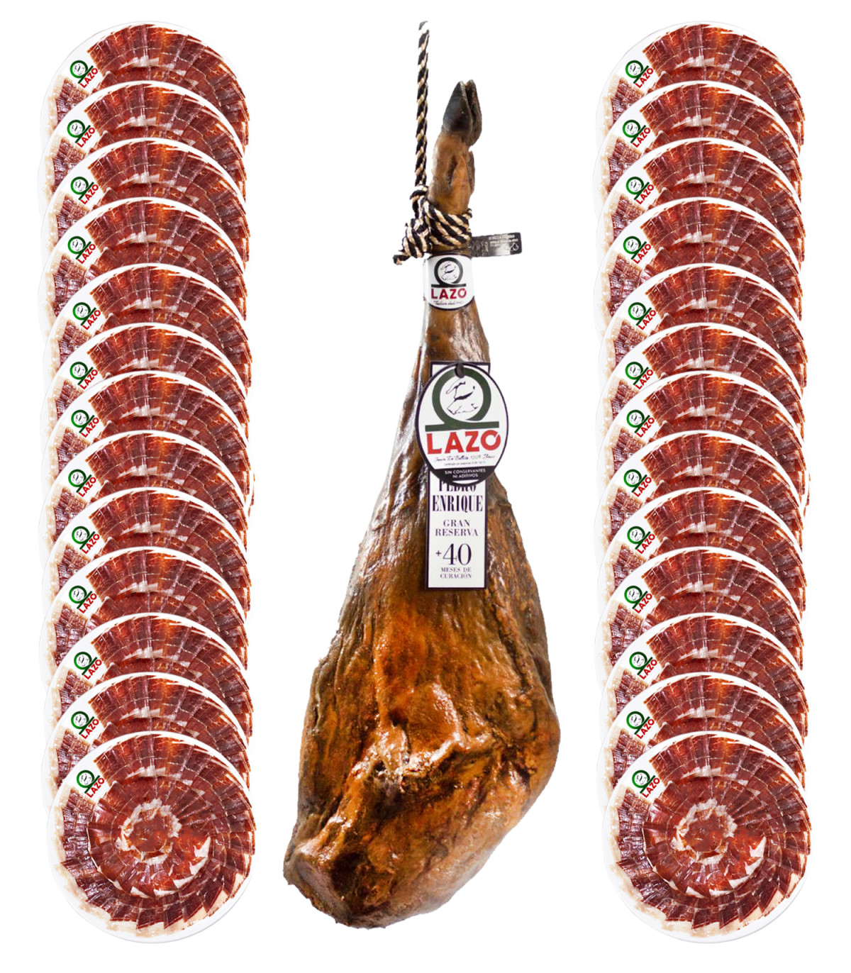 Pack de 32 sobres de Jamón de bellota 100% ibérico con Gran Reserva Pedro Enrique loncheado a cuchillo en 100gr