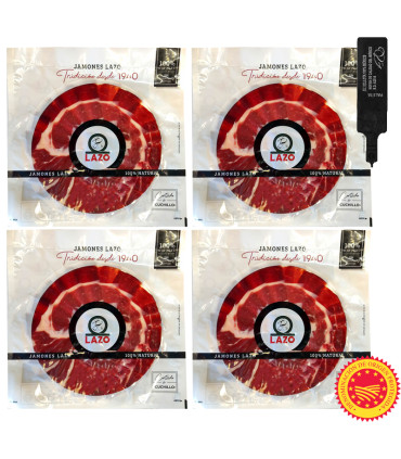 pack de 4 sobres de Jamón de bellota 100% ibérico con Denominación de Origen Protegida Jabugo loncheado 100 gr