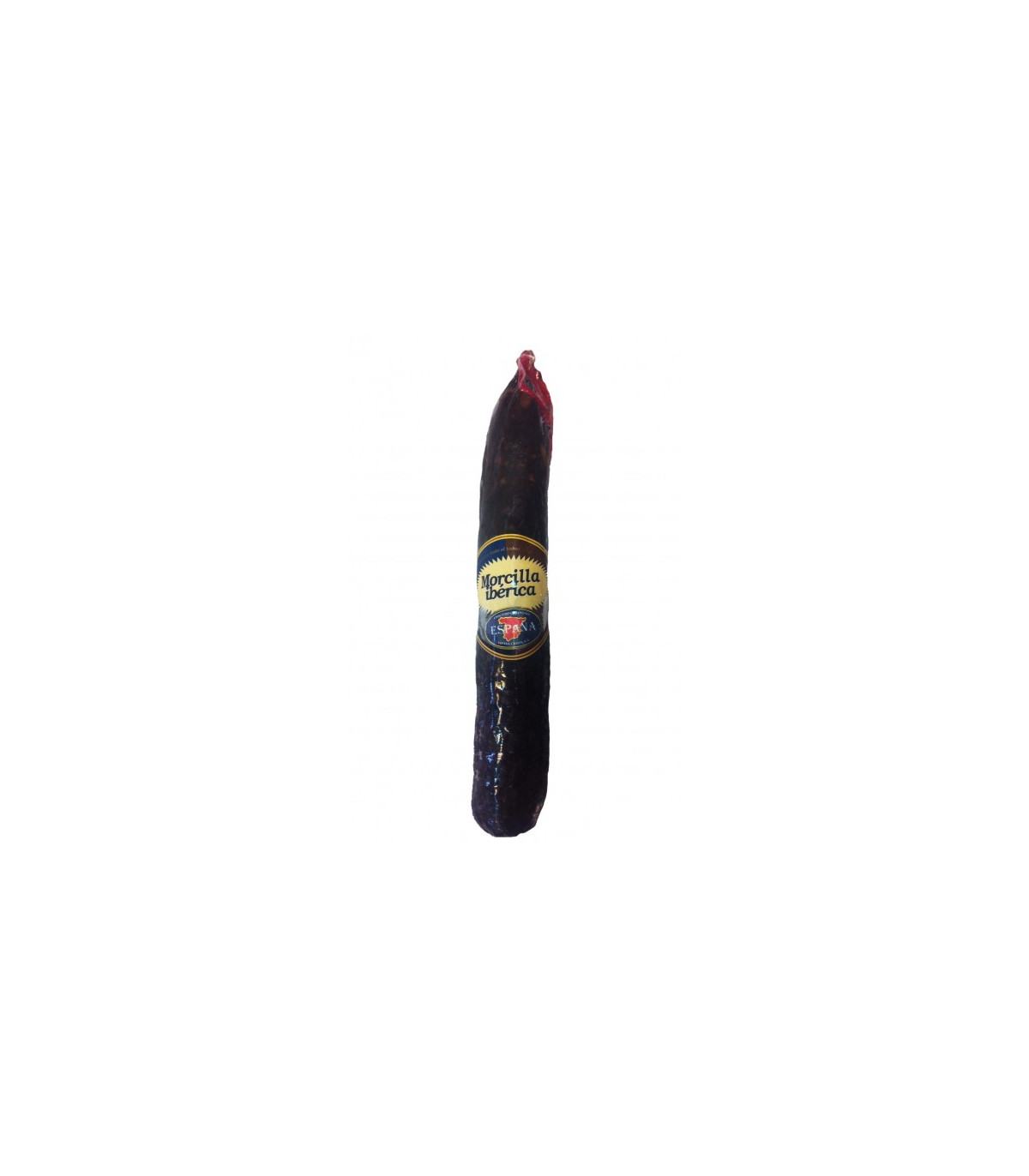 Morcilla ibérica en formato de vela, elaborada con carne, pimentón, sangre, ajo y grasa de cerdo ibérico de cebo.