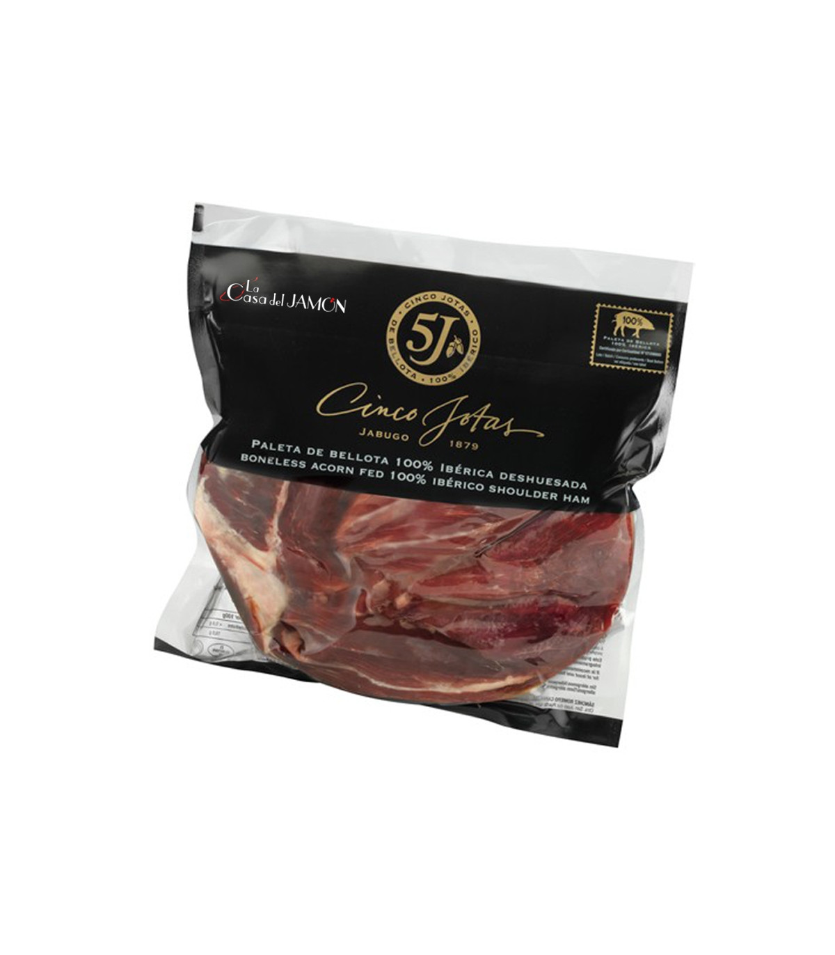 Pieza deshuesada en las salas de manipulación de la fábrica, elaborada a partir de una Paleta 5J, selección de cerdos ibéricos puros alimentados exclusivamente de bellota.