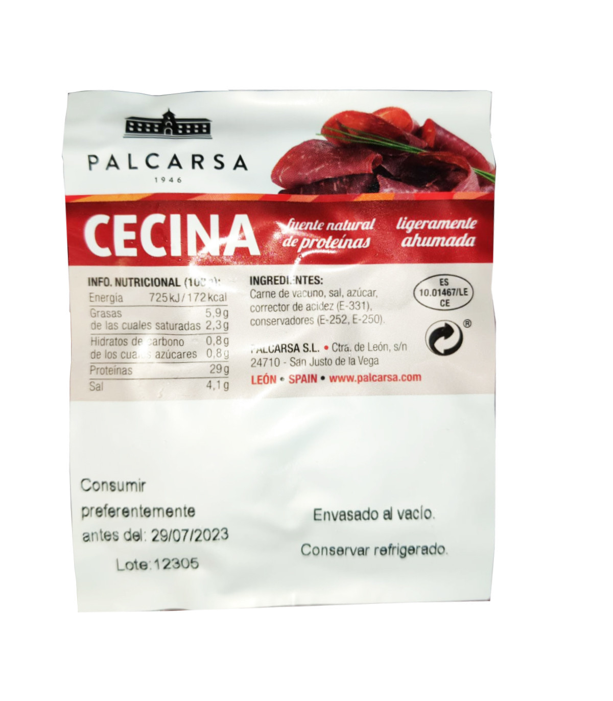 Viande de boeuf (cecina). Affinage de 7 á 8 mois. Qualité supérieure.