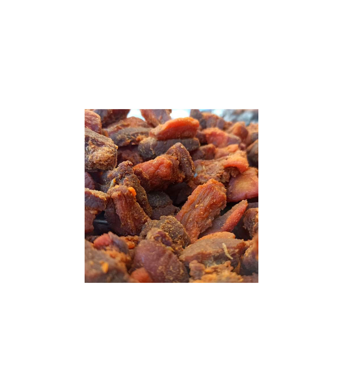 En utilisant le ventre ou les bajoues de porc pour créer cette délicatesse, la viande striée du porc est juteuse et croquante en même temps. L'élaboration de ce produit est 100% artisanale et aucun colorant ni conservateur chimique n'est utilisé.