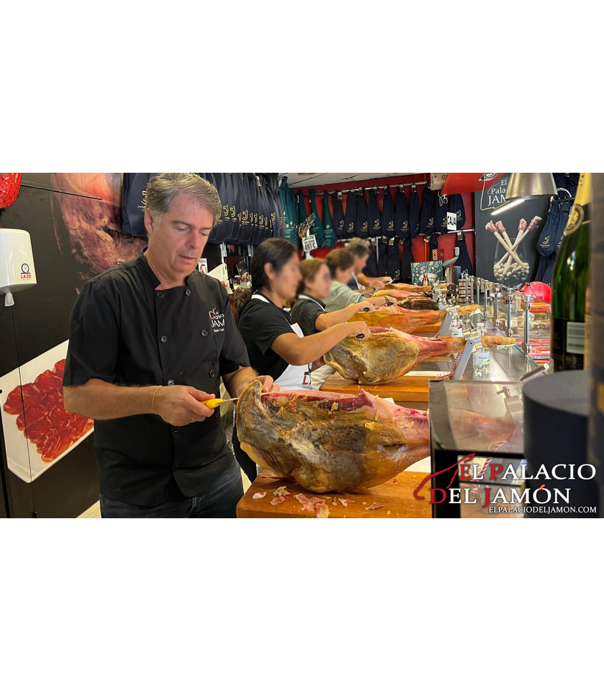 Le cours durera 5 heures, qui débutera par une boisson chaude. Immédiatement après, un cours sera donné sur la différenciation entre les jambons et les qualités pour devenir un expert dans le choix des jambons selon nos goûts ou nos besoins. Pendant les 4 heures restantes, nous apprendrons tous les trucs et secrets de la coupe traditionnelle du jambon tout en coupant notre propre jambon acquis pendant le cours.