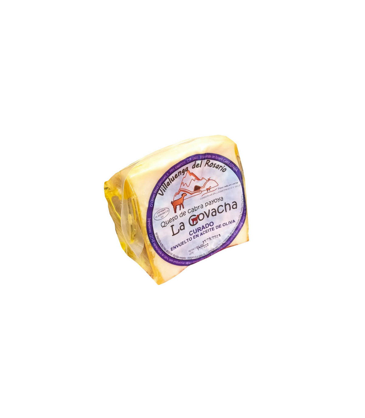 Le morceau de fromage de chèvre payoya La Covacha enveloppé dans de l'huile d'olive est une délicatesse originale de la province de Cadix. Sa forte saveur, macérée dans l'huile d'olive, lui donne cette couleur caractéristique et appétissante.