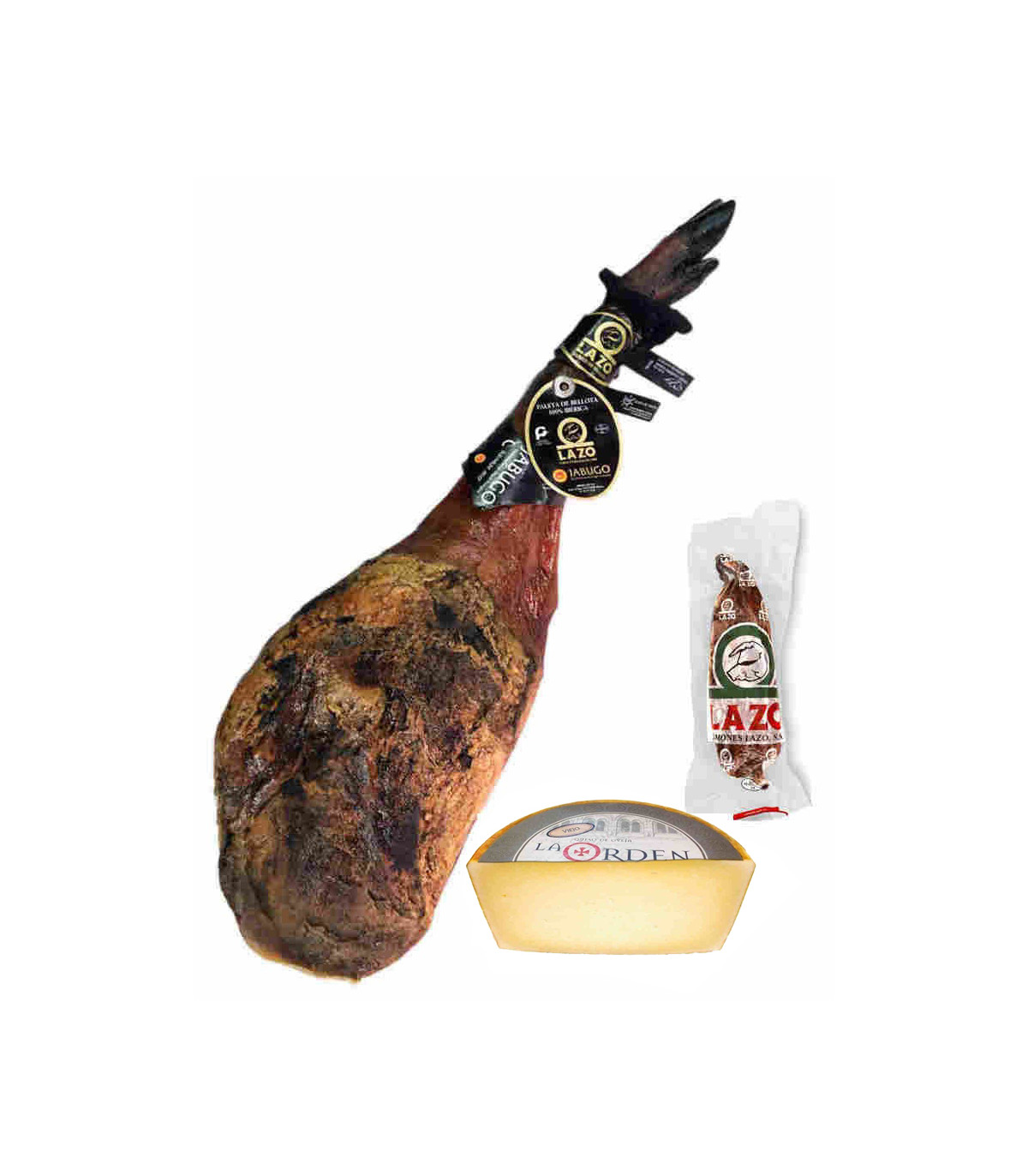 Lomito 100% ibérique au gland Lazo est la proie de la palette extérieure sans gras de porcs ibériques à 100%, nourrie aux fruits du chêne vert et principalement du chêne-liège (gland) dans les pâturages et dont la guérison dure environ 60 jours dans les Sierra de Aracena utilisant des braseros au charbon de chêne pour réguler la température et l’humidité de l’environnement.