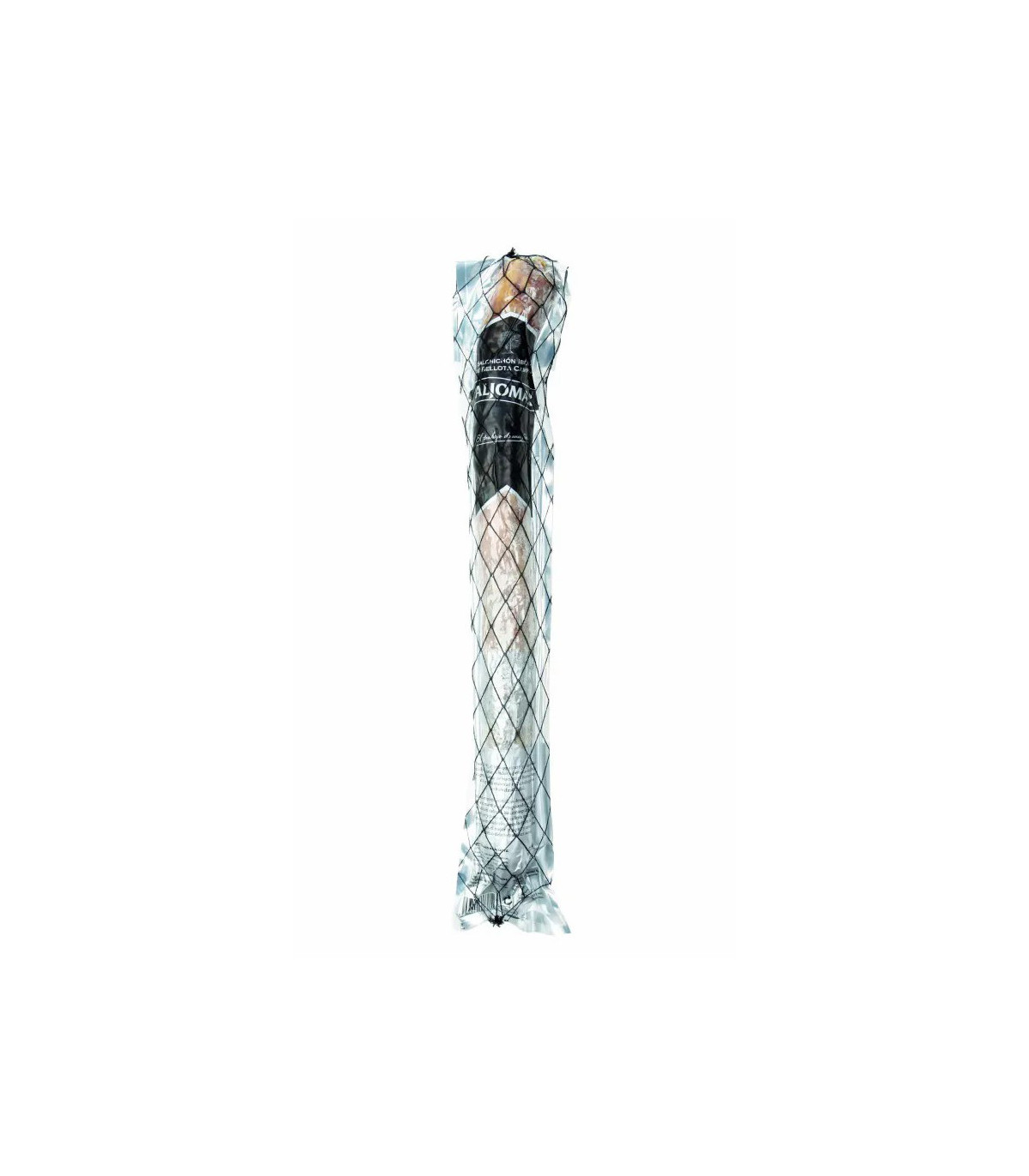 Saucisson 100% de viandes nobles de porcs ibériques, provenant des pâturages d'Andalousie, d'Estrémadure et de Salamanque, alimentés à partir de produits naturels tels que des céréales, de l'herbe et des glands.(bellota),tranché en 100grs.
